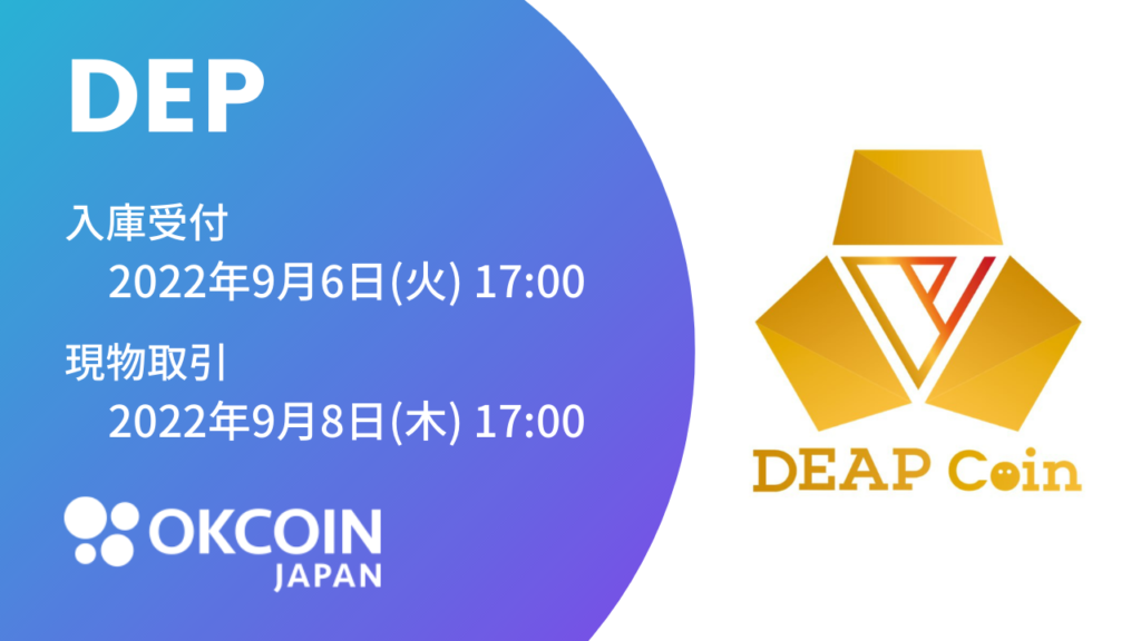 当社は、OKCoinJapan(暗号資産取引所)にて、『ディープコイン(DEP)』を、2022年9月6日(火)に取り扱い開始することをお知らせいたします。