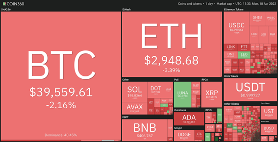伝統的な金融市場における長い週末(金曜日がイースター休暇、いわゆる復活祭だった)の後、ビットコインとアルトコインともに月曜日に下落した。暗号資産市場全体は、4月初旬以降、著しく低迷しており、ほとんどの反発が一時的なものとなった。