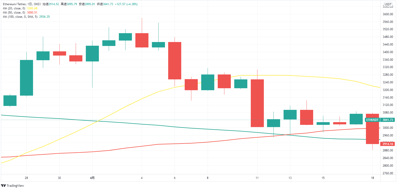 [2022/04/19] BTC, ETHは下落して週明け