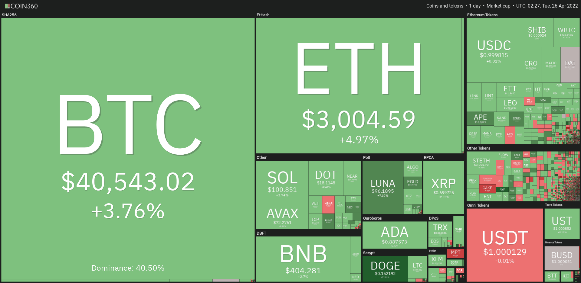 BTCは直近安値を更新したものの反発し、40,000ドルを回復している。BTCを保有しているテスラ社のCEOがTwitter社を買収したことで、同社での保有やサービスにおける活用が進むとの思惑もあった模様。