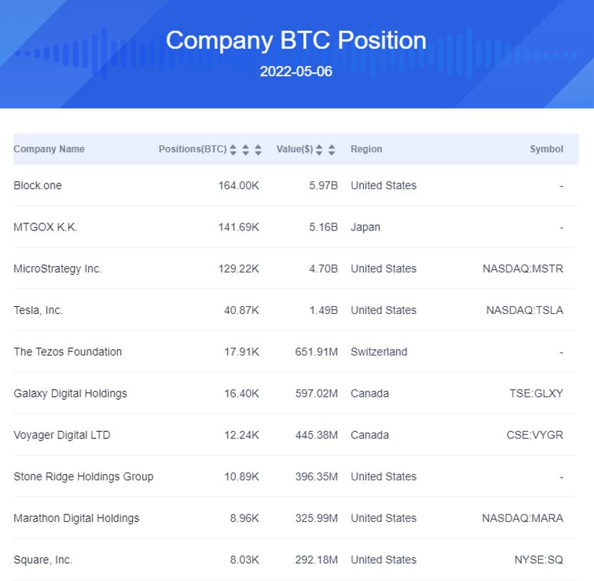 企業のBTC保有状況は下記の通り。
