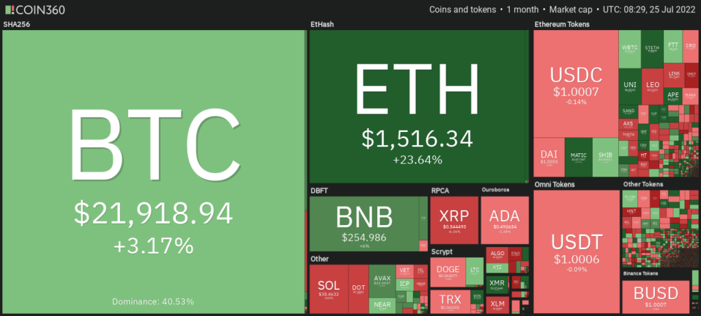 直近1ヶ月のヒートマップから、ETHの上昇率が高いことが見て取れる。
