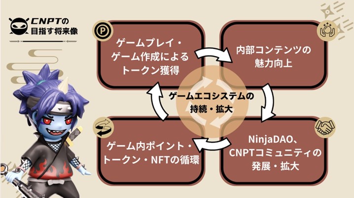 将来的にコミュニティが『CryptoNinja Party!』内のゲームを制作する機能の実装を予定しており、コミュニティとゲームを共創する「Create to Earn」エコシステムの基軸トークンのIEOを目指します。