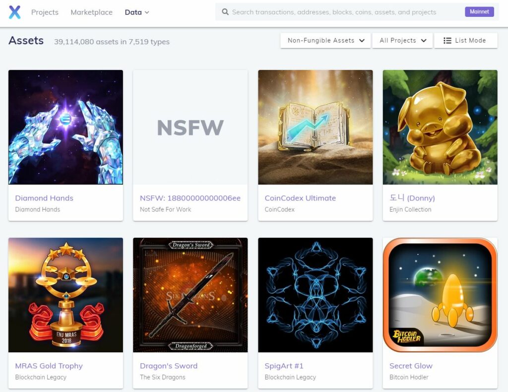 NFTマーケットプレイス「EnjinX」では、300を超えるプロジェクトごとにミントされているNFTを検索することができます。