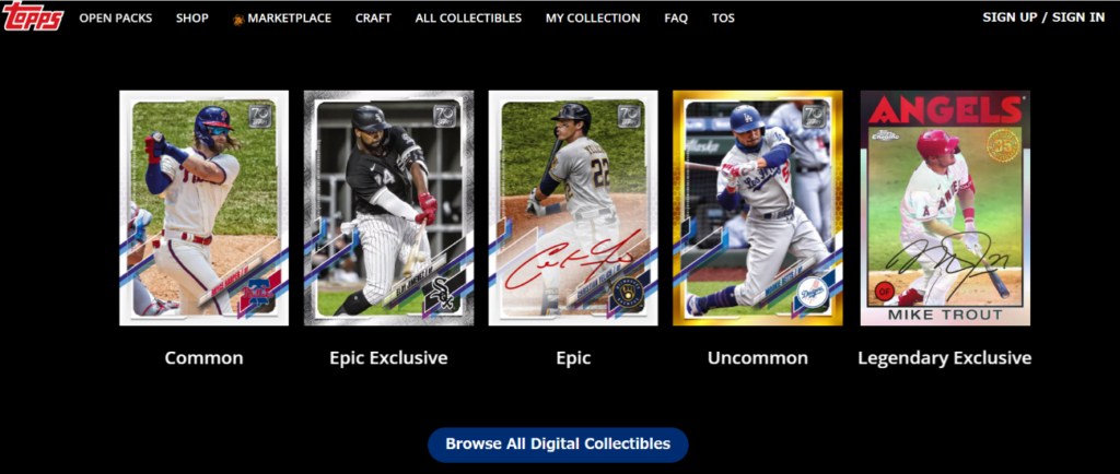 「Topps MLB NFT」は、アメリカのカードゲーム会社Toppsとメジャーリーグベースボール(MLB)が共同で開発したトレーディングカードゲームです。