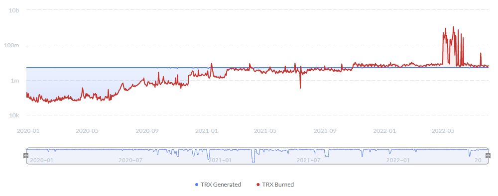 焼却の目的は、暗号資産の流通量を減らすことにより、1枚あたりの価値を高めることにあります。TRXは一日あたり約600万TRXを焼却しており、2022年は明らかに焼却量が発行量を上回っています。